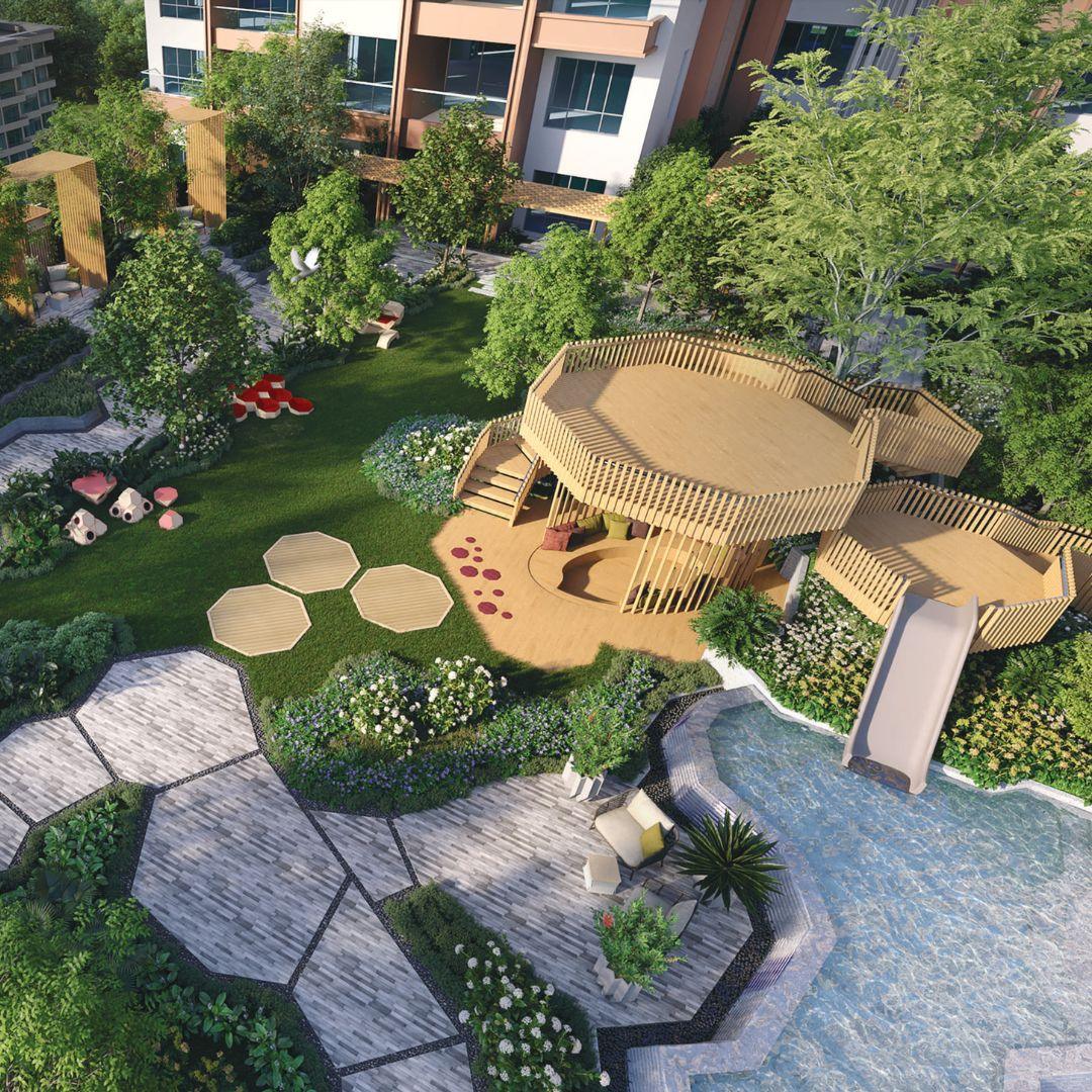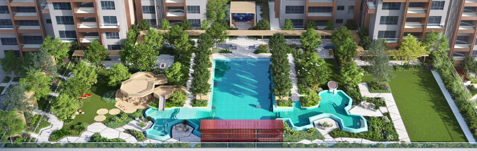 All flats are South-facing, Co working pavilion available, Sports field for tennis, basketball, Garden and sitting area on roof, Tree house within the premises, Swimming pool with cabanas, Water body view, 3 side open Vaastu apartments